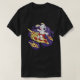 I give wanted to give this a 4 instead of a 5 because these Basic DARK T0shirts run unexpectedly SLIM or Narrow. Which is great if you do not have a potbelly, but I have a paunch. It isn't the shirt's fault that I've got a beer belly. The design and shirt itself is a quality cotton shirt. The color is more of a deep purple, but still a very pretty color. The Basic DARK T-shirts run a bit SLIMMER than the Basic Ts. The neck is a fraction narrower (or seems to be narrower) also. I'm a paunchy middle-aged woman and my neck is 12 inches (31cm) thick and the neckline fell about the same as in the photo of the man, and I had the desire to tug it a bit. So if you're a thick necked man or like loose shirts, be aware these are slimmer shirts. Once I get rid of my lockdown paunch it'll look great. The shirt washed well in cold water with no apparent bleeding. We don't have a dryer, so it hung dry. Did not shrink. Love the colors and the design. The design looks smaller on my shirt than it does on the model on-line. But still, it looks good on the shirt. The printing looks as it does on the model, just the size seems fractionally smaller. Washed garment in cold water, hung dry and design appeared unaffected.