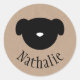 Name sticker/ tag, featuring a black dog symbol on a picture of brown paper background.