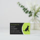 Dog training business cards with image of dog sitting nicely, bright and colourful modern design with green colour accents and text space you can personalise to make this work for your training and obedience business. Stand out and be noticed with a great first impression using a business card template that will be remembered.