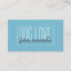 Whimsical dog walker, pet sitting, and dog boarding business card featuring a tall quirky typeface contrasted with a handwritten font against a rich blue green background. The reverse side of the card has a whimsical girl walking a dog in a repeated pattern. Add your own business name. If your name is longer please make the type smaller to fit in the rectangle. You may simply keep "dog love" and add your name beneath.