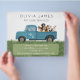 An animal and pet care services promotional flyer. Suitable for a dog walker, boarder, dog sitter or doggie day care. On a white background, watercolor images of eight dogs including a labrador, beagle, bull dog, terrier and corgi, are displayed sitting in the back of a blue dog walker van as it travels over the grass. Personalise by adding editing with your business details.