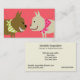Two cute dogs wearing bandanas are on leashes for pet care business cards. Dark brown dog is smiling and showing big teeth. Bright colours and coral background on front of card. Back of card has your business information. Great for dog walkers, doggie daycare, pet sitters, veterinarians, or anyone who provides pet care services.
