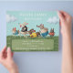 A pet care services flyer. Perfect for a dog walker, boarder, dog sitter or doggie day care. The design consists of an illustration of five funny dogs running a race through a field with blue sky and clouds. Personalise by adding your contact details.