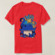 I give wanted to give this a 4 instead of a 5 because these Basic DARK T0shirts run unexpectedly SLIM or Narrow. Which is great if you do not have a potbelly, but I have a paunch. It isn't the shirt's fault that I've got a beer belly. The design and shirt itself is a quality cotton shirt. The color is more of a deep purple, but still a very pretty color. The Basic DARK T-shirts run a bit SLIMMER than the Basic Ts. The neck is a fraction narrower (or seems to be narrower) also. I'm a paunchy middle-aged woman and my neck is 12 inches (31cm) thick and the neckline fell about the same as in the photo of the man, and I had the desire to tug it a bit. So if you're a thick necked man or like loose shirts, be aware these are slimmer shirts. Once I get rid of my lockdown paunch it'll look great. The shirt washed well in cold water with no apparent bleeding. We don't have a dryer, so it hung dry. Did not shrink. Love the colors and the design. The design looks smaller on my shirt than it does on the model on-line. But still, it looks good on the shirt. The printing looks as it does on the model, just the size seems fractionally smaller. Washed garment in cold water, hung dry and design appeared unaffected.