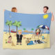 Experience the bliss of the beach with our Doggone Beachy Fleece Blanket! This charming cartoon illustration showcases a family having a blast on the sandy shores. From the lady relaxing under her umbrella to the guy walking his pug, every detail adds a touch of humour and cuteness. With a boat cruising in the ocean and seagulls soaring above, this blanket is the perfect way to bring the beach vibes into your home.