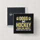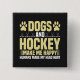 Hockey theme button with text that reads Dogs and Hockey Make Me Happy Humans Make My Head Hurt! Also features some hockey sticks and dog paw prints!