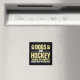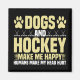 Hockey theme magnet with text that reads Dogs and Hockey Make Me Happy Humans Make My Head Hurt! Also features some hockey sticks and dog paw prints!
