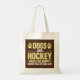 Hockey theme tote bag with text that reads Dogs and Hockey Make Me Happy Humans Make My Head Hurt! Also features some hockey sticks and dog paw prints!