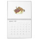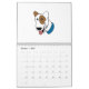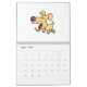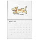 A calendar that contains dogs' cartoons. Each month hold a different cartoon of a dog.