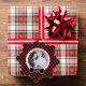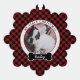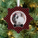Dog's First Christmas Ornament Card with photo of your pet, their name and year they celebrate their very first Christmas. Red and black buffalo plaid chequered pattern background makes this a classic keepsake pet ornament.