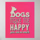 Dogs Make Me Happy Pink Wall Art Poster