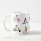 Cute illustrated dogs on bikes and scooters by Kitty's Art. Illustration includes Dalmatian on bicycle, Dachshund on scooter, Basset Hound on Vespa and Labrador on Penny Farthing.