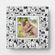 Made to look dimensional, a border of black and white dogs creates a fun frame for your favourite photo on this tabletop plaque with a built-in easel. The image is put directly on the hardboard panel for a stunningly crisp image with an easy wipe clean surface. Great as a gift or to display your favourite photo in your home. TIP: If using square plaque, you might need to crop your photo to a square BEFORE uploading it for best results.
