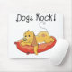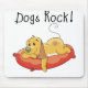 A cute brown dog relaxes happily on her puppy bed and black text reads "Dogs Rock!" on our Dogs Rock T-shirts, mugs, mousepads, buttons, cards, and more!