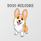 Cute Corgi Cartoon with text reading "Dogs Welcome"