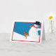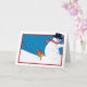 A dog’s holiday greeting. Dog meets snowman