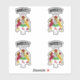 Designed in Ireland these stickers show the family name in English with its Irish Gaeilge translation below it and the meaning of the name under the coat of arms.