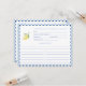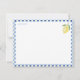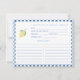 Recipe card design adorned with a simple watercolor lemon with green leaves, against a geometric blue and yellow square tile background (which matches the reverse of my bridal shower invitation designs in the same collection).