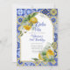 Dolce Vita Italian Blue Gold Tiles Lemons Birthday Invitation