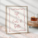 This beautiful Italian inspired bridal shower design features handwritten style cursive lettering accented with a wavy scribble ribbon border in tomato red. A hand drawn bow illustration completes the design for a summery Amalfi Coast look. This elegant Mediterranean bridal shower cards & gifts sign features a handwritten lettering that can be customised if desired. Ready to frame; choose professional printing and shipping or the instant download option to print locally or at home.