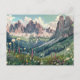 Discover the beauty of the Dolomites with this retro travel poster/postcard. Featuring jagged peaks and lush valleys, this design captures Italy's stunning landscapes. Great for nature lovers and fans of vintage art.