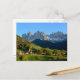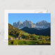 Postcard with the village St. Magdalena with its church in the Villnoesstal in South Tyrol, Italy, during fall season.
