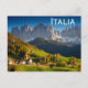 Dolomites village postcard with text 'Italia'