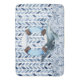 A vivid image of a playful dolphin swimming under a lifebuoy. The dolphin exudes a certain grace and elegance, while the lifebuoy symbolises safety and protection. In the background there is a line pattern and wave pattern in different shades of blue, conveying a calm and maritime atmosphere. The combination of these elements creates a harmonious and calming design that stimulates the imagination and perhaps even makes you long for the sea.