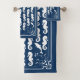Your monogram nestled between seahorses escorted by dolphins on a navy blue background.