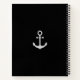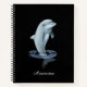 Cute dolphin emerging from the ocean with script and anchor on the back side on black Notebook. The anchor can be customised and the script ready to be personalised.
