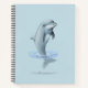 Cute dolphin emerging from the ocean with script and anchor on the back side on light blue Notebook. The anchor can be customised and the script ready to be personalised.