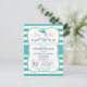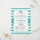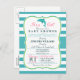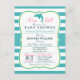 It's a girl! Elegant girly aqua turquoise blue dolphin baby shower invite on vertical stripes pattern and pink font highlights with vintage formal look. Great for girls nautical ocean aquatic sea life theme baby showers. Retro bracket shape invitation.