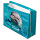 Grey dolphin photograph smiling out of beautiful clear ocean water. You can personalise it by adding any text you want, your names, or your initials. Just change the text added to your own choice.