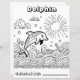 Cute adult colouring page. An adorable dolphin playing in the ocean waves sea creatures themed colouring page for kids.