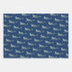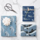 Dolphin wrapping paper, in three designs and colours, printed on three large sheets that come rolled, not folded.  Dark blue and blue-grey colours have various types of dolphin swimming.  The designs are perfect for any adult birthday celebration, or summer party gift giving.
