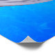 3 Bottlenose dolphin swimming around a ocean blue peace sign.