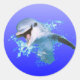 Dolphin smiling up at you, in a shimmering blue ocean.