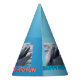 Celebrate in style with a festive dolphin party hat featuring three playful dolphin photos tiled across the design. Between each dolphin, cheerful balloons add color and energy, while the gradient aqua background creates a lively ocean vibe. Under each dolphin, bold text reads “Happy Birthday,” the celebrant’s name, and “Dive Into Fun,” making this hat a joyful centerpiece for any under‑the‑sea celebration. Perfect for kids’ birthdays, ocean lovers, and splash‑filled parties, this hat adds a coordinated touch to your dolphin‑themed event.