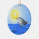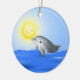 Baby Dolphin swimming in blue ocean water and playing with the sun cartoon digital illustration.