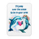 Dolphin valentines greeting card features wedding couple in love with phrase I `ll jump the ocean to be in your arms