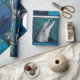 A delightful collage of watercolor whales and dolphins features in this artwork.