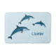 Adorable, sweet blue bath mat featuring three playful dolphins. You can customise it with your name.