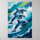Dolphins Jumping Through Ocean Waves Dynamic Marin Poster