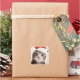 Domestic tabby cat wearing red Christmas hat Square Sticker