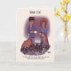A card with a funny cartoon about cats and dogs playing chess. Original artwork by DBcartoons.