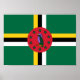 The Dominica flag is a flag with a circular red emblem with Sisserou Parrot and 10 stars. The used colours in the flag are red, green, yellow, white, black, brown, purple. The proportion of the Dominica flag is 1:2. The Flag of Dominica was adopted in 1990. The first use of the current flag design was in 1978. The last change to the current Dominica flag design was in 1990.