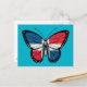 This unique design features the flag of Dominican Republic on a beautiful butterfly. The flag contours to the details in the wings and curves around the body of the butterfly giving it a realistic look. The edges of the wings are painted black which frames the Dominican Republic flag inside of the pattern. This wonderful flying creature is a perfect combination of nature and patriotism.