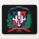 The coat of arms appears in the centre of the flag of the Dominican Republic.