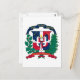 The coat of arms appears in the centre of the flag of the Dominican Republic.