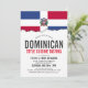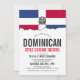 A Dominican flag-themed white invitation card for your next food-themed event. A great item to use for a Dominican food cuisine event, or barbecue.